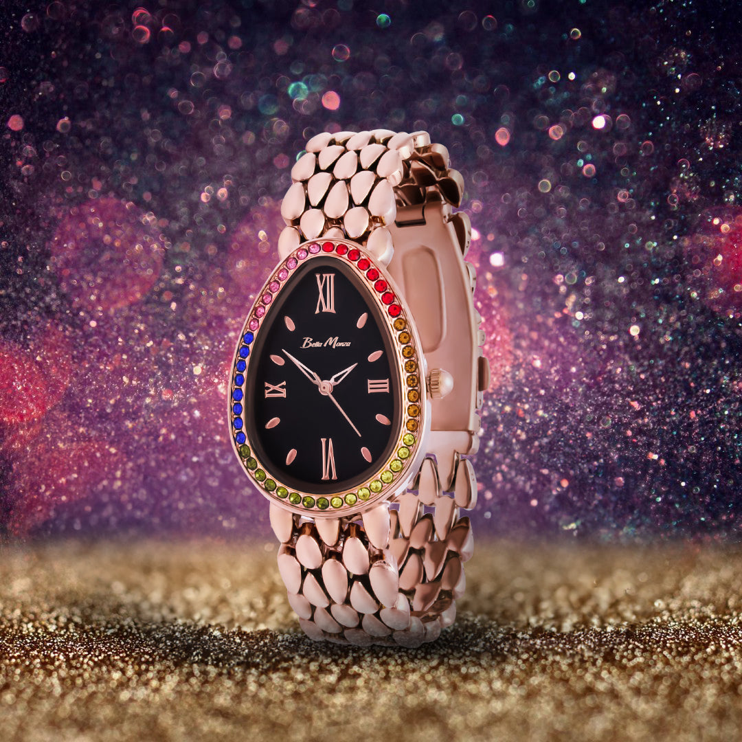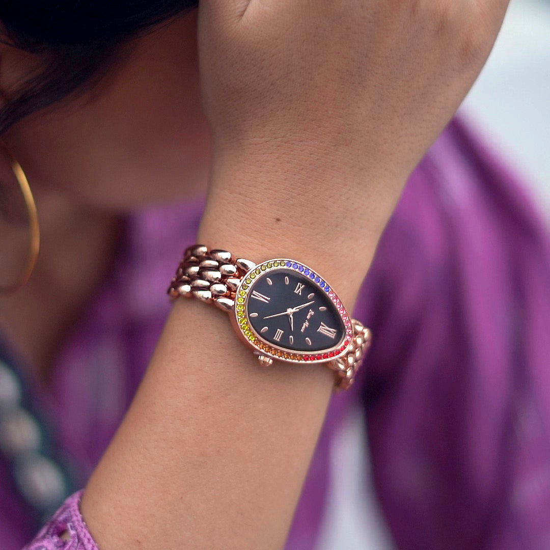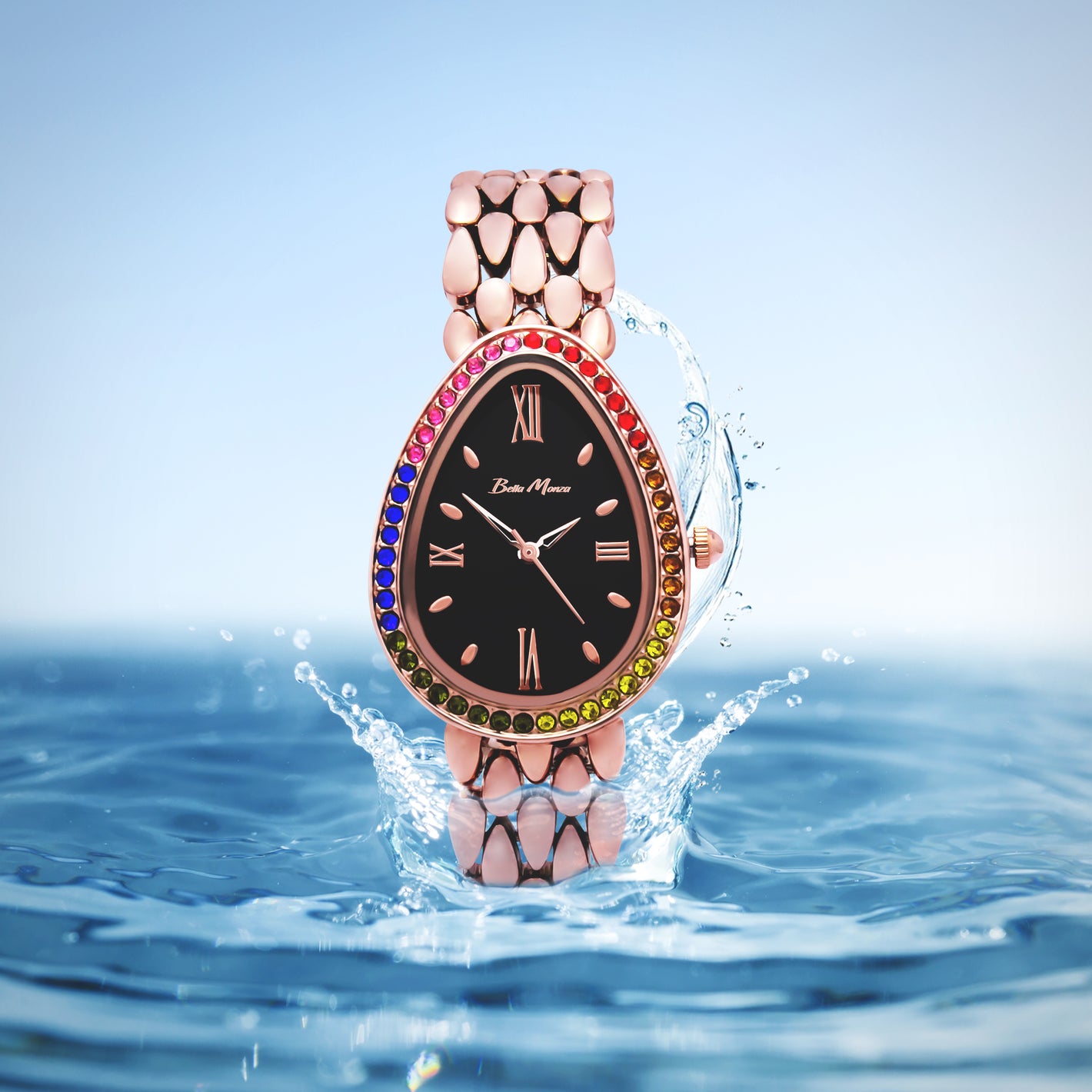 In a world that often embraces monochrome beauty, there arose a desire to celebrate the vibrant spectrum that colors bring to life. Thus, the journey of Aquadrop Allure Rainbow Prism began, a journey that sought to capture the allure of colors in a single timepiece.