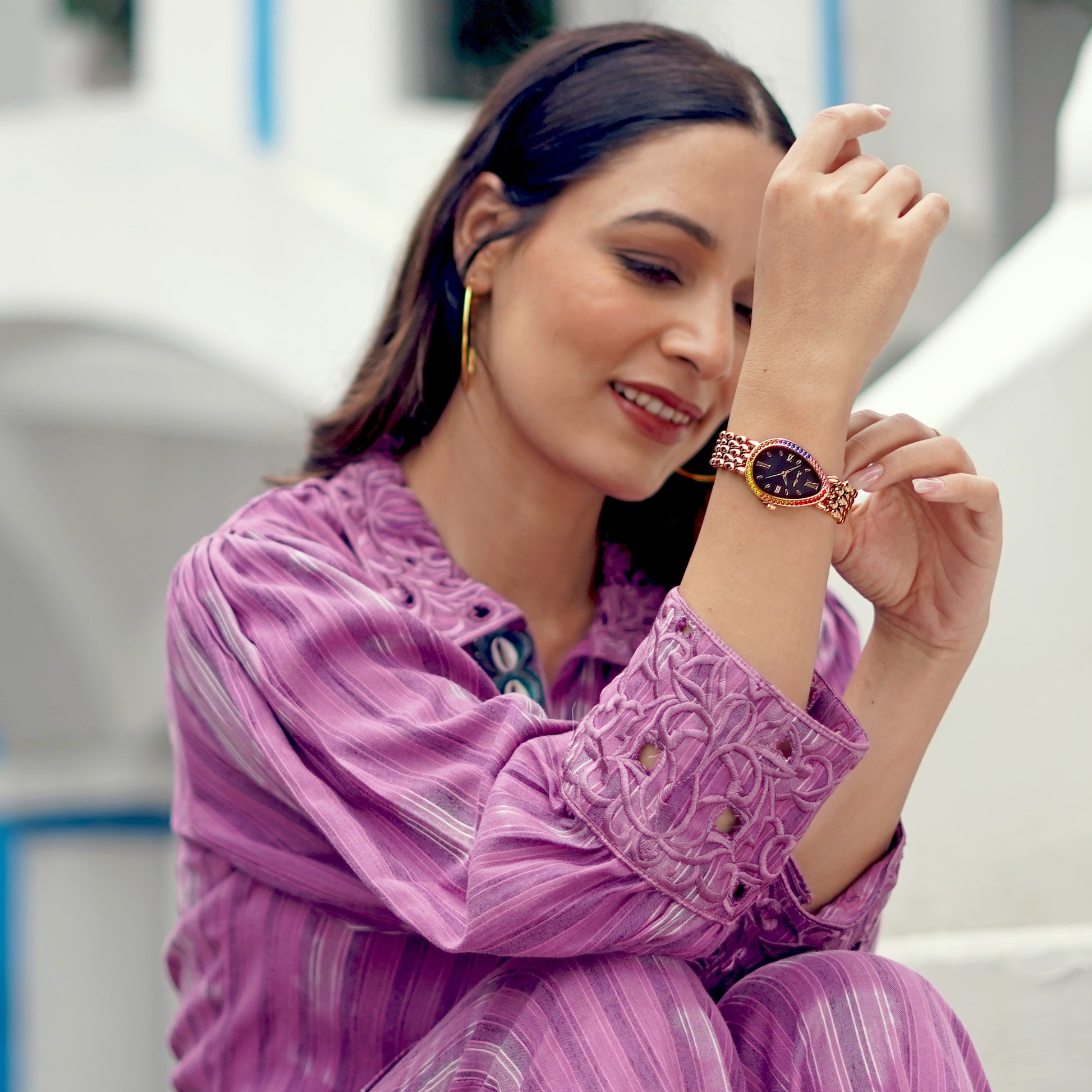 The inspiration came from the prism's enchanting dance of colors. Just as light refracts through a prism to create a mesmerizing spectrum, we aimed to capture the vivacity of these colors in a watch that would encapsulate the essence of vibrant elegance.